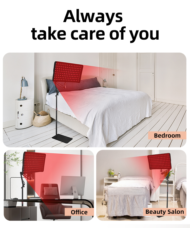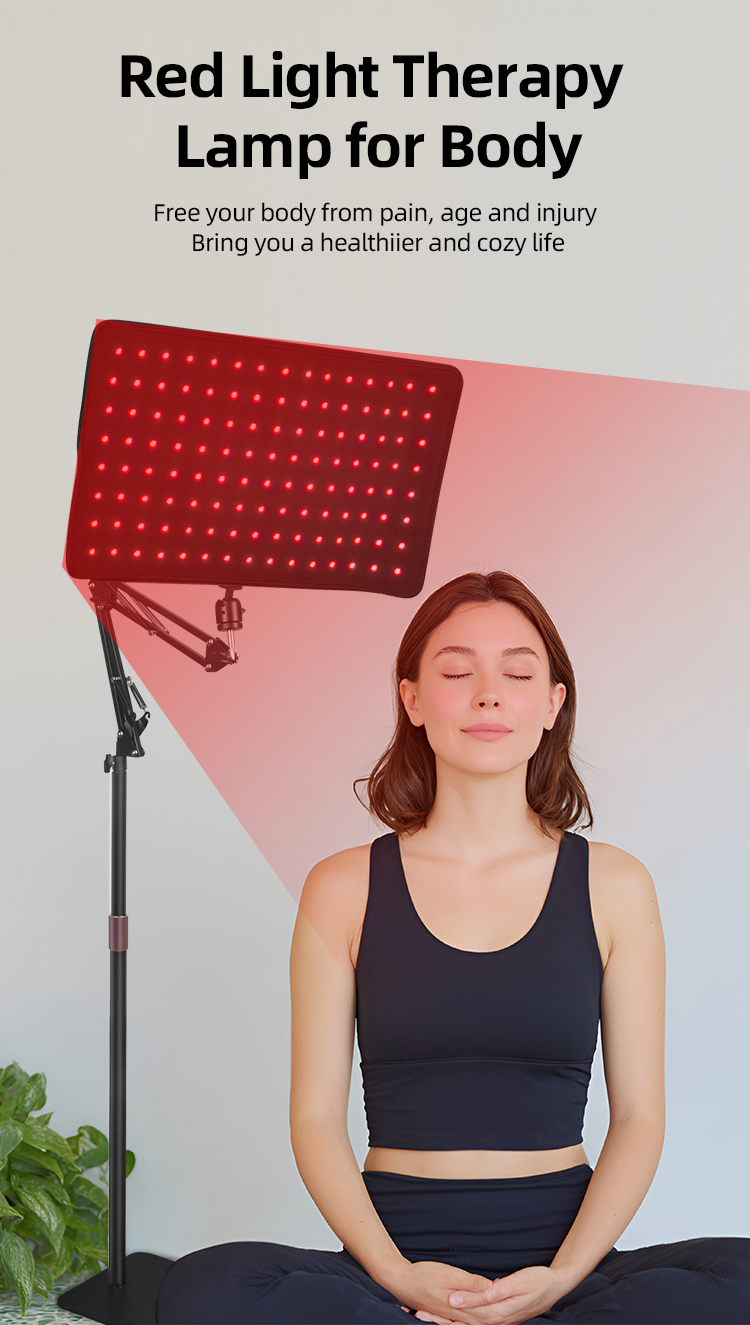【Home portable red light therapy device】 Red light therapy for face and body device makes it easy to say goodbye to expensive and time-consuming light therapy in the salon. Red light therapy device for face and body device is packaged with a hook and stand, and you can flexibly adjust the Angle and height of 180° when using it, you can easily use them to irradiate various parts of your body to meet your daily home needs at a more friendly more cost-effective price.