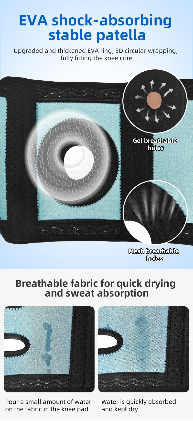 【Better quality】 3D high elasticity breathable knitted fabric, soft and breathable, smooth edges, EVA shock absorption, stable patella