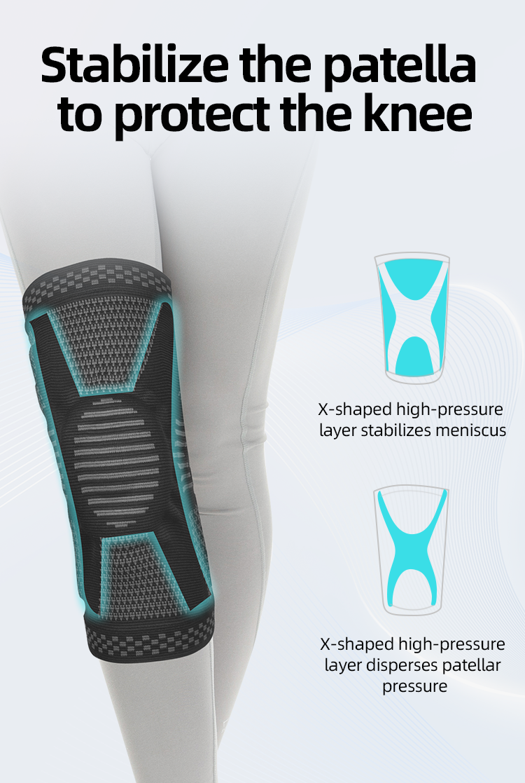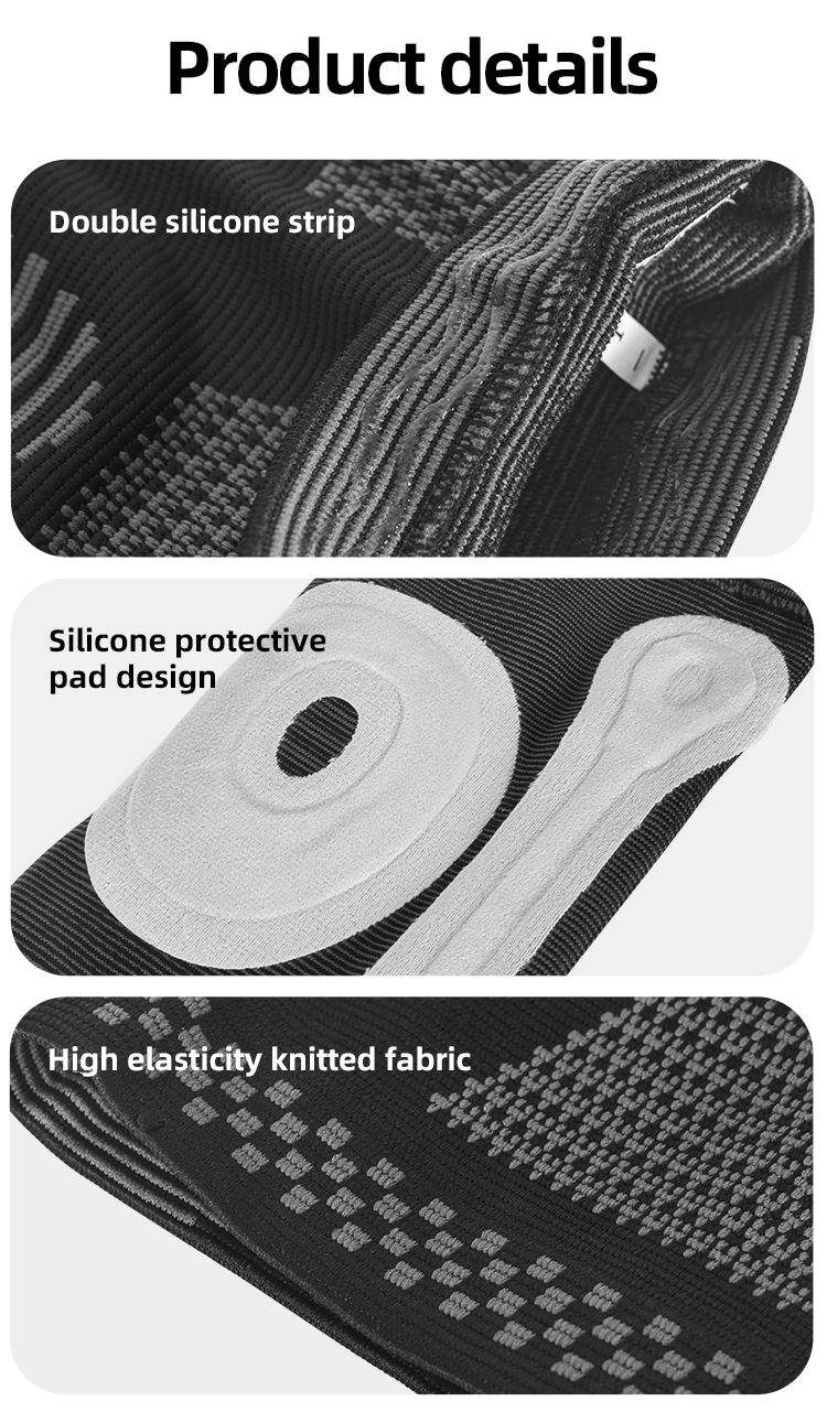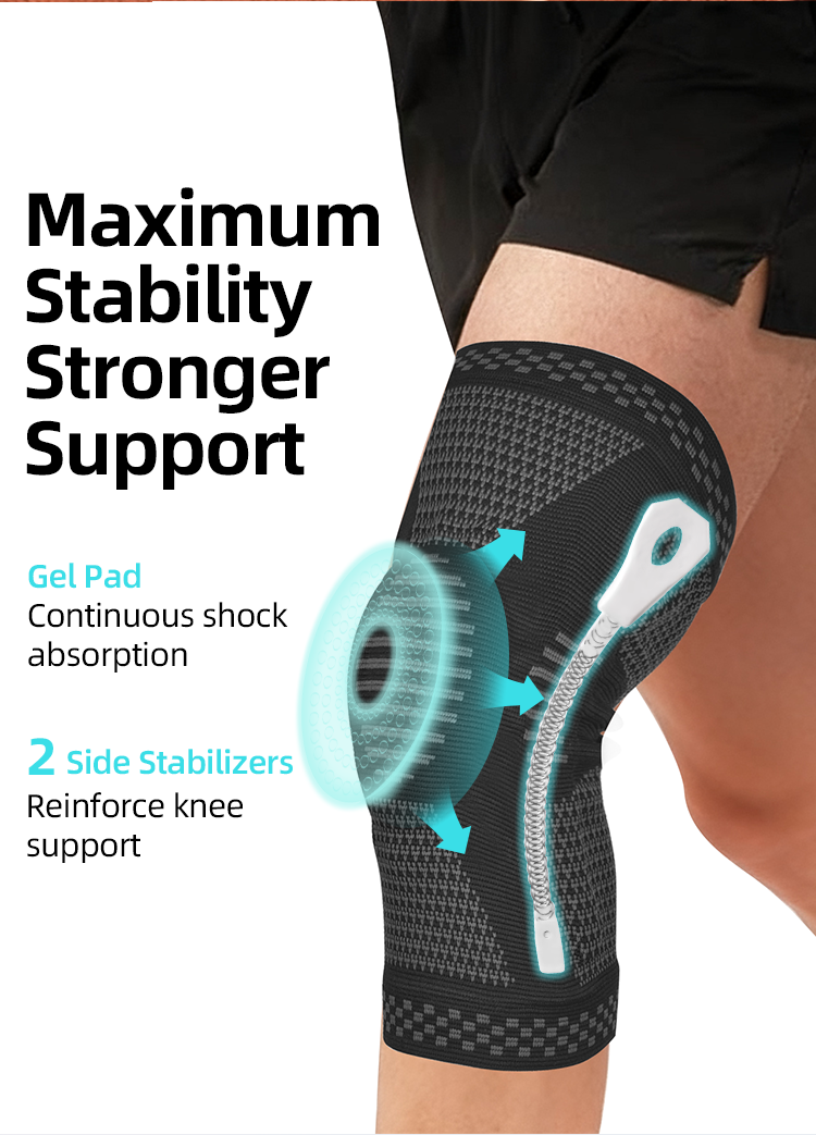 This professional knee stabilizer features a silicone pad that stabilizes the patella and a fish scale support spring that reduces joint load. Combined with an anti-slip rubber strip, it prevents slipping and provides stable support during running, jumping, and other high-impact movements.