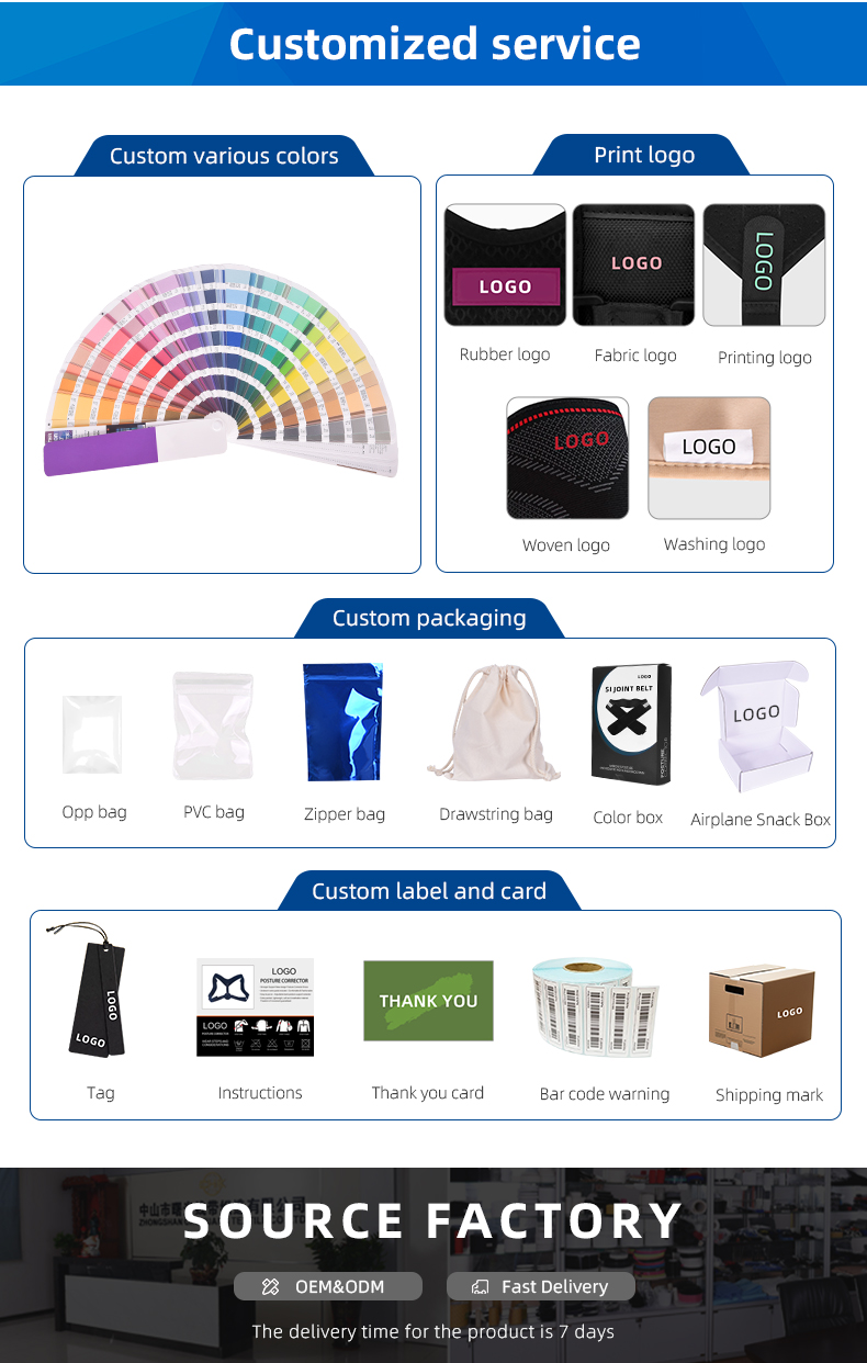 With a 2,000 m² manufacturing area, three workshops, over 500 workers, 50+ QC staff and dedicated R&D team, we are prepared to handle both small tests and full-scale production with consistent quality. The same manufacturing processes that serve knee brace manufacturers, custom knee brace manufacturers and wellness brands also supply this pelvic belt line — meaning you get the benefits of proven supply chain, rigorous inspections, fast response and scalable output. Choosing this belt means partnering with a support-gear manufacturer that understands multi-category product development and top-tier OEM/ODM service.