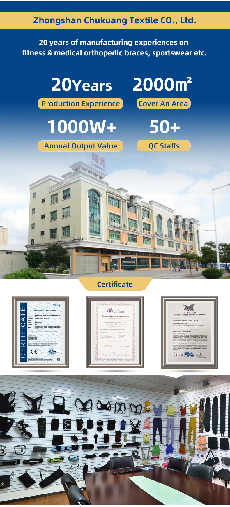 Zhongshan Chukuang Textile Co., Ltd. has 20 years of expertise in manufacturing high-quality fitness wear and orthopedic braces. With 2,000m² of modern facilities and over 500 skilled workers, we ensure reliable OEM/ODM services and stringent quality control. Contact us now for your custom quote or production plan.