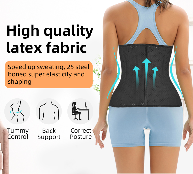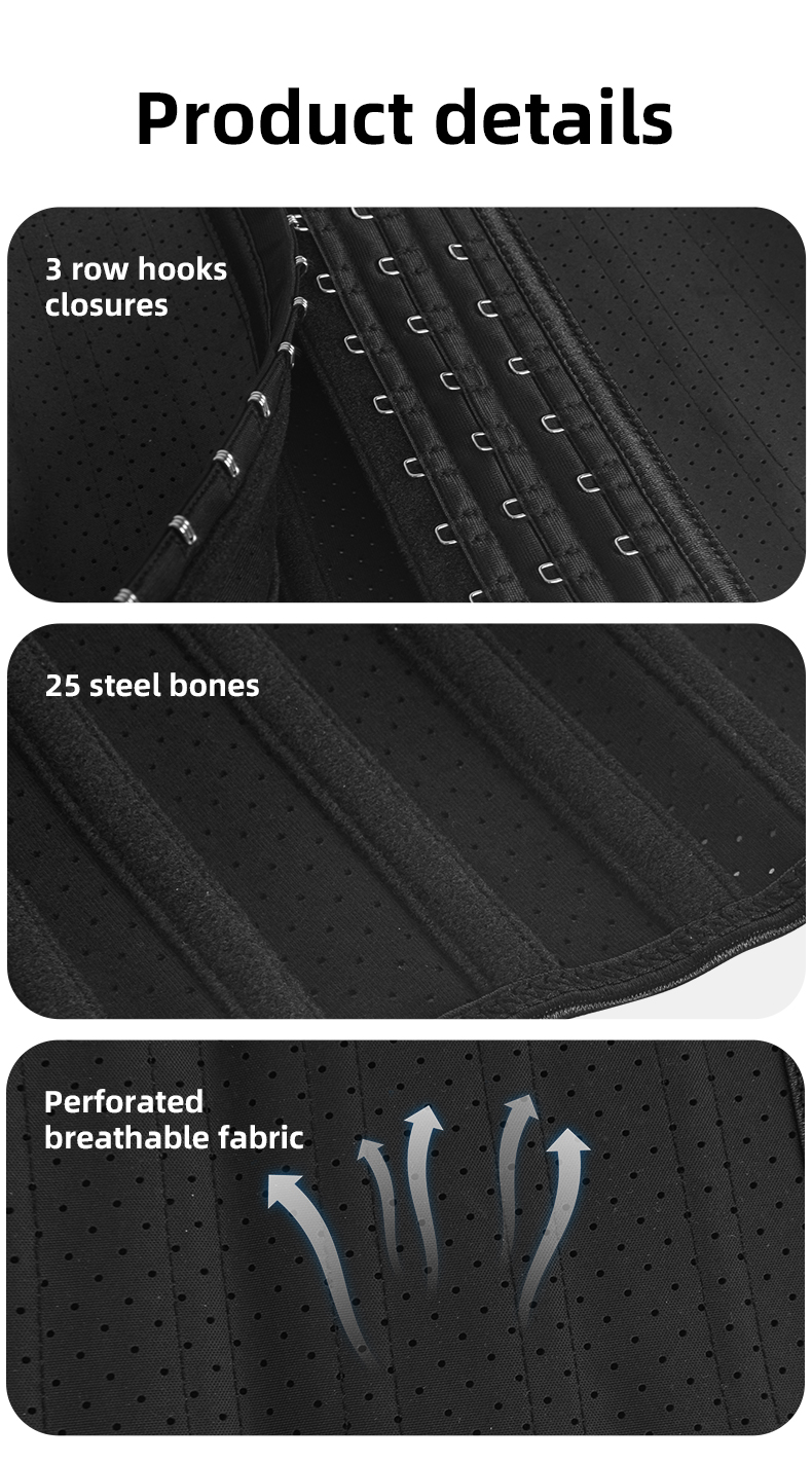 The structural design centers on 25 flexible steel bones providing reinforced stability aligned with natural body contours, maximizing lumbar protection without sacrificing mobility. The latex shaping panels deliver consistent compression while the breathable cotton and bamboo fiber blend supports skin health for extended wear. The three-column hook-and-eye closure enables scalable adjustment, accommodating different body shapes and ensuring secure waist support belt fitting in diverse operational settings. This modular system enhances product longevity, supporting both daily intensive use and compliance with ergonomic safety standards.