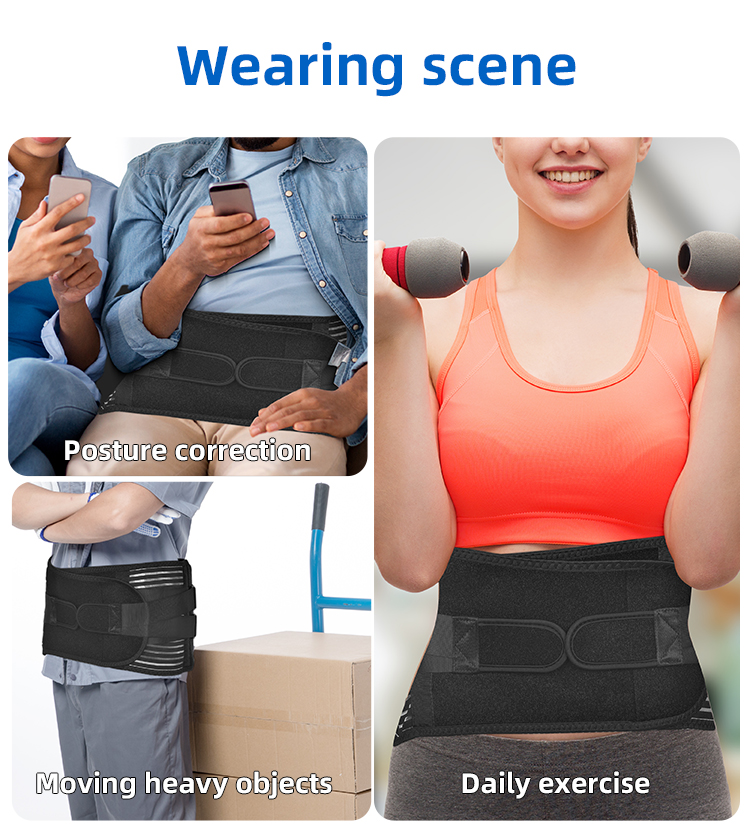 In physiotherapy and post-operative rehabilitation contexts, the waist support belt serves as a stabilizing device supporting spinal recovery. The removable padding and customizable strap tension align with therapeutic regimens promoting proper posture and controlled movement. This functionality facilitates clinician-directed patient compliance with prescribed support levels, enhancing recovery trajectories while sustaining comfort during prolonged wear. The device’s breathable, adjustable design integrates well with clinical treatment workflows requiring adaptable back support solutions.